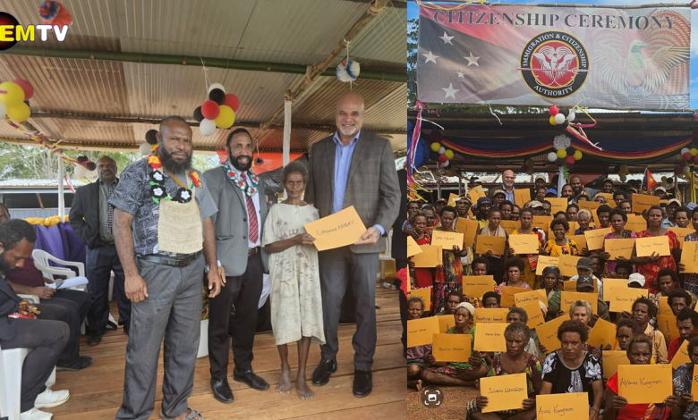 Deputy Prime Minister John Rosso who is also responsible for Ministry of Immigration and Border Security, presented the naturalization citizenship certificates to the West Papuans who reside at Iowara, East Awin, in Western Province.