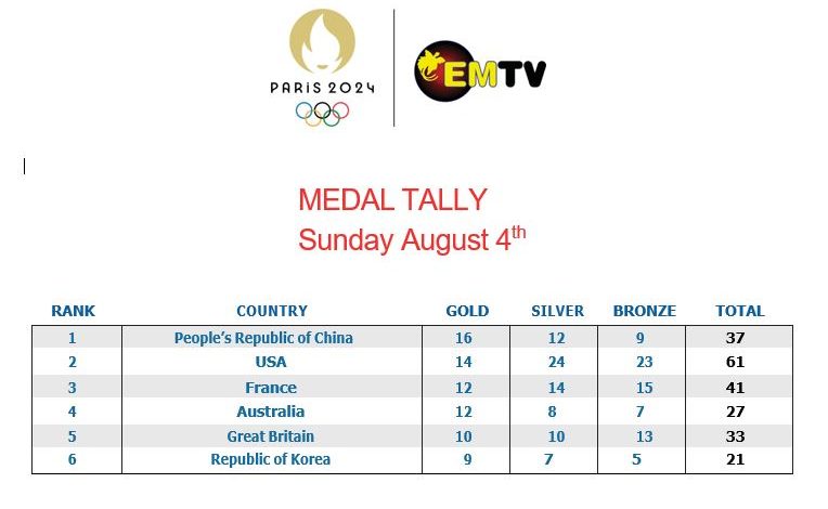 PARIS OLYMPIC GAMES MEDAL TALLY UPDATES