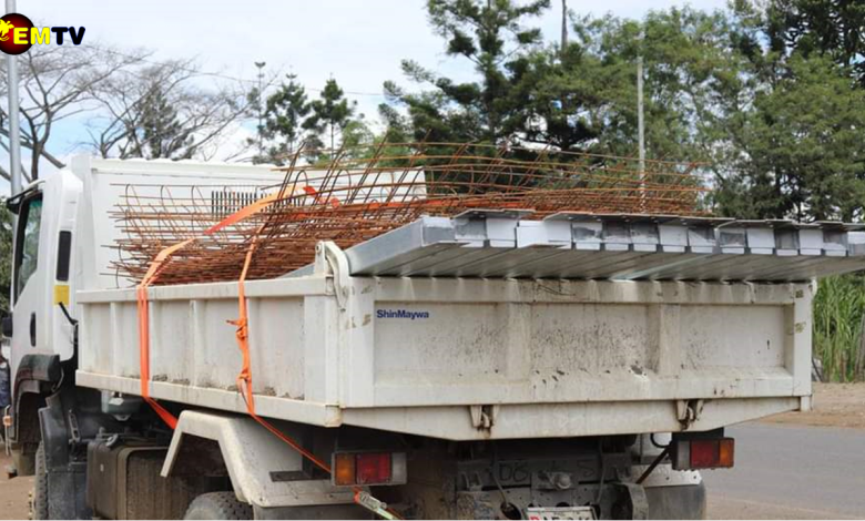The building materials being transported for immediate construction of the Lufa District Mushroom Building Facility, which is a development initiative of the Lufa District Development Authority. Picture credit: Mortimer Yangharry