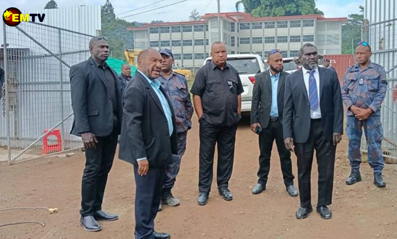 Sir Peter Ipatas (left) taking ABG President Ishmael Toroama and his delegation on an official tour of the Innovative University of Enga Main Campus at Irelya just a few kilometers outside of Wabag Town. Picture credit: Raymond Dessi