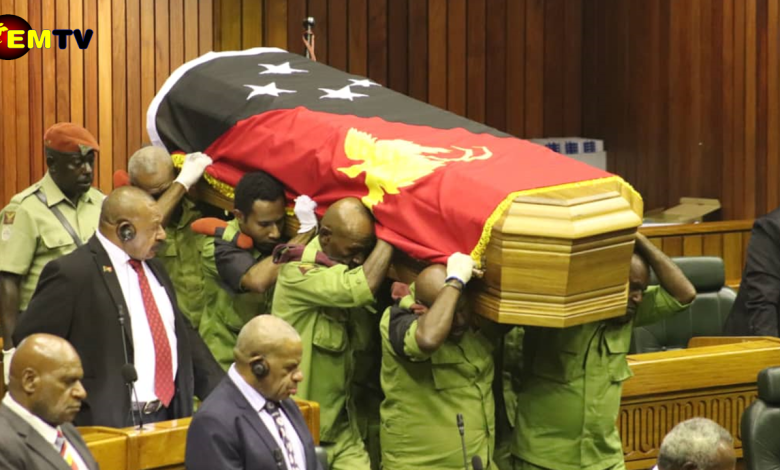 Members of parliament paid their final respect to the Central Bougainville MP late Fr. Simon Dumarinu as the casket arrived in parliament house in Port Moresby.