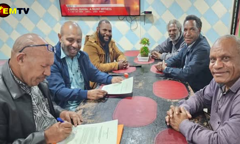 Executives of Enga Inter-denominational Global Mission with the Chief Executive Officer of the Enga Provincial Health Authority Dr.cVincent Pyakalyia (left) signing the Memorandum of Agreement (MoA) to formally end over the Kundis Community Aid Post to the EPHA recently.