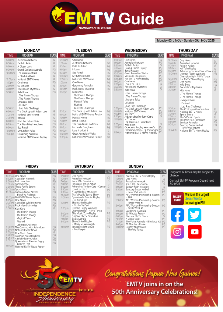 TV Schedule TV GUIDE | MONDAY 03rd NOV – SUNDAY 9th NOV 2025 admin Send an email November 3, 20250 48 Less than a minute Facebook X LinkedIn Tumblr Pinterest Reddit VKontakte Odnoklassniki Pocket admin Send an email November 3, 20250 48 Less than a minute Facebook X LinkedIn Tumblr Pinterest Reddit VKontakte Odnoklassniki Pocket Share Facebook X LinkedIn Tumblr Pinterest Reddit VKontakte Odnoklassniki Pocket Share via Email Print