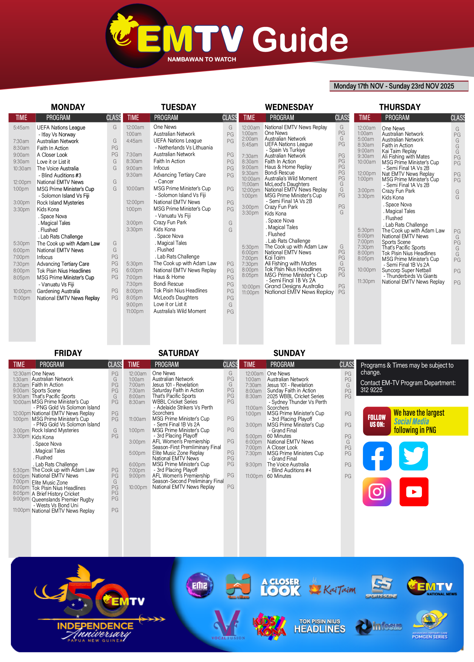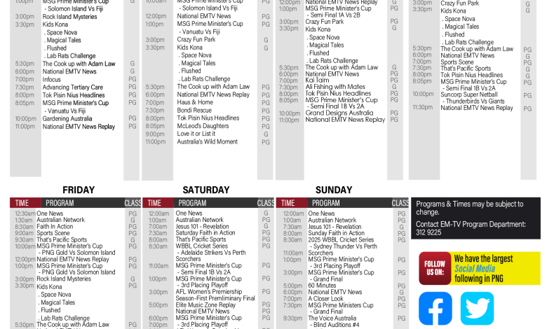 TV Schedule TV GUIDE | MONDAY 17th NOV – SUNDAY 23rd NOV 2025 admin Send an email 3 weeks ago0 40 Less than a minute Facebook X LinkedIn Tumblr Pinterest Reddit VKontakte Odnoklassniki Pocket admin Send an email 3 weeks ago0 40 Less than a minute Facebook X LinkedIn Tumblr Pinterest Reddit VKontakte Odnoklassniki Pocket Share Facebook X LinkedIn Tumblr Pinterest Reddit VKontakte Odnoklassniki Pocket Share via Email Print