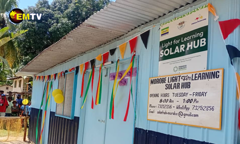 During a small ceremony yesterday at Buakap Village in Salamaua, Minister for Community Development, Youth and Religion Jason Peter and Minister Counsellor (Economics, Health and Infrastructure) at the Australian High Commission, Dr. Kate Rogers, officially launched the lighting for the households, including the opening of the Light For Learning solar hub.