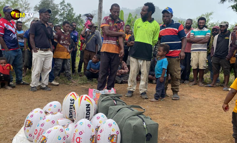 The two sets of jersey and other sporting equipment including 19 rugby balls were taken to Guminin with the help of Port Moresby rugby football league tournament coordinator John Ambane and Steven Sugl who delivered the items to Kirina Tigers and EnGo Brothers.