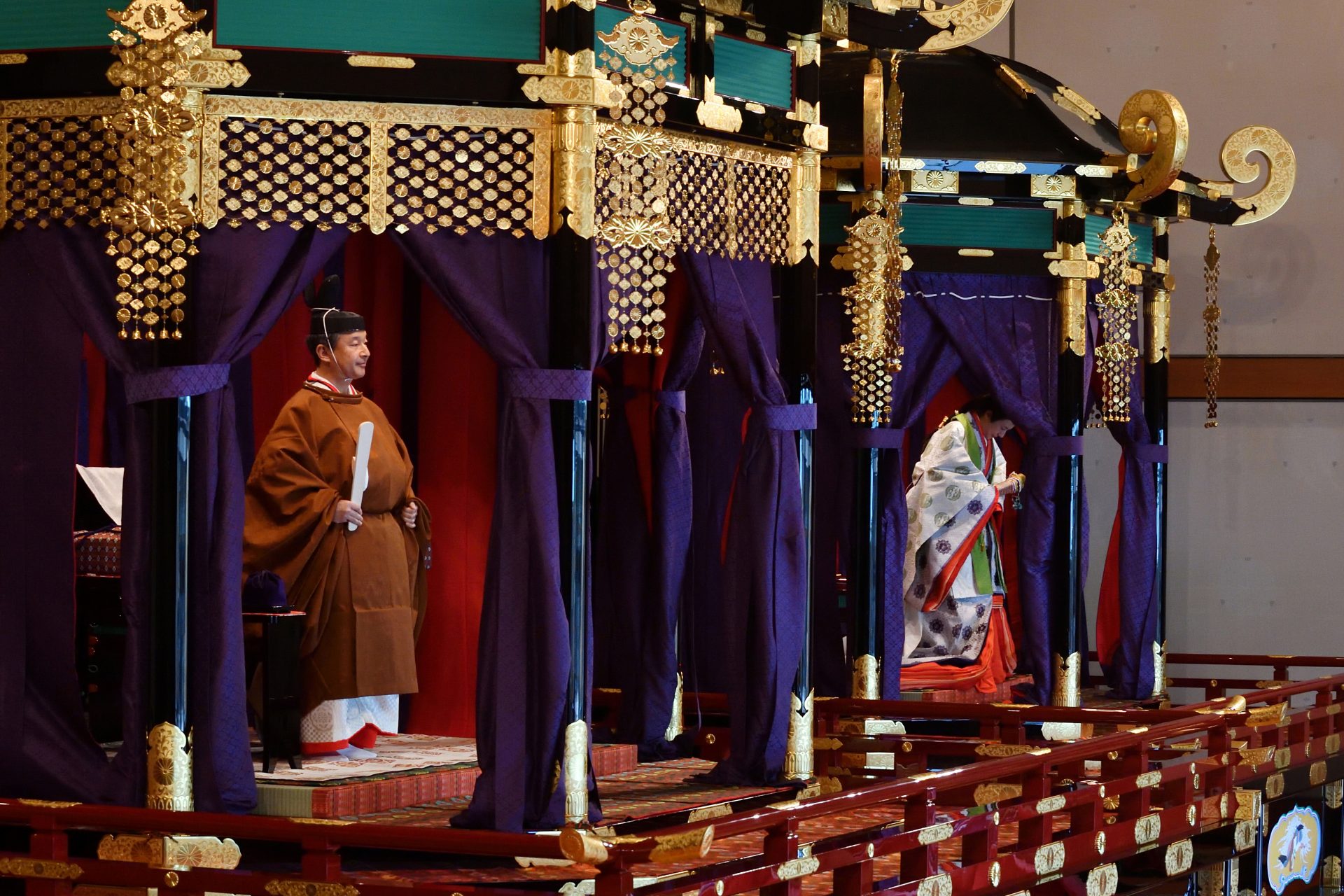 Japan’s Emperor Naruhito and Empress Masako attend the enthronement ceremony where he officially proclaims his ascension to the Chrysanthemum Throne at the Imperial Palace in...