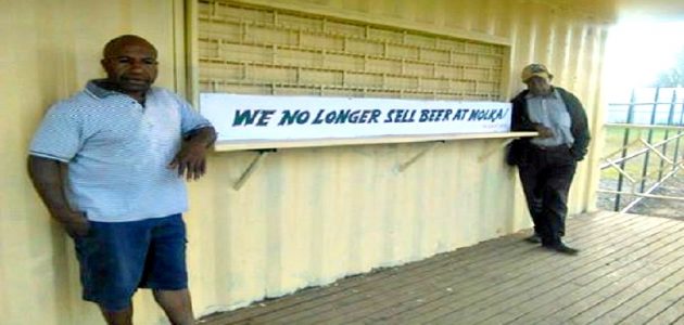 A Facebook post showing the picture of a placard nailed to the counter of one of the takeaway outlet with thick black writing in capital letters__WE NO LONGER SELL BEER AT MOLKA!_