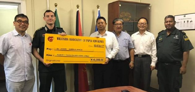 In a small ceremony at the St John Ambulance Headquarter in Port Moresby, the Malaysia Association in Papua New Guinea donated K40, 000 to St. John Ambulance.