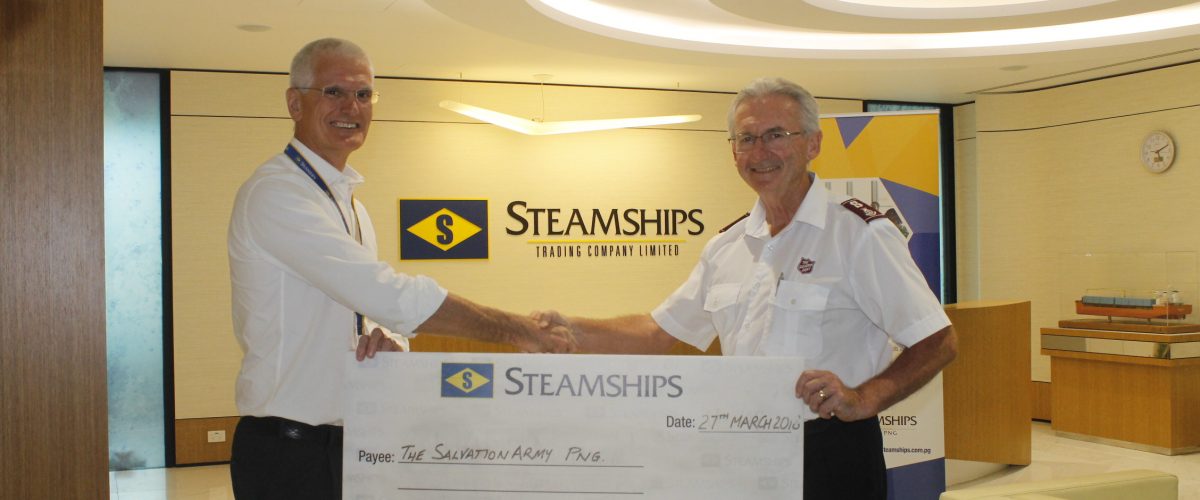 Steamships Trading recently gave K50,000 to the Salvation Army to help assist the victims of the February earthquake in the Highlands.