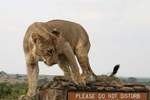 The images on social media showed the lion walking along a grassy verge next to the busy road and past some people who looked on from behind a closed iron-bar gate…