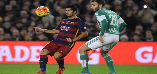 Luis Suarez struck twice and Lionel Messi scored on his 500th appearance for Barcelona who set a new Spanish record of goals in a calendar year with a 4-0 win over Real Betis