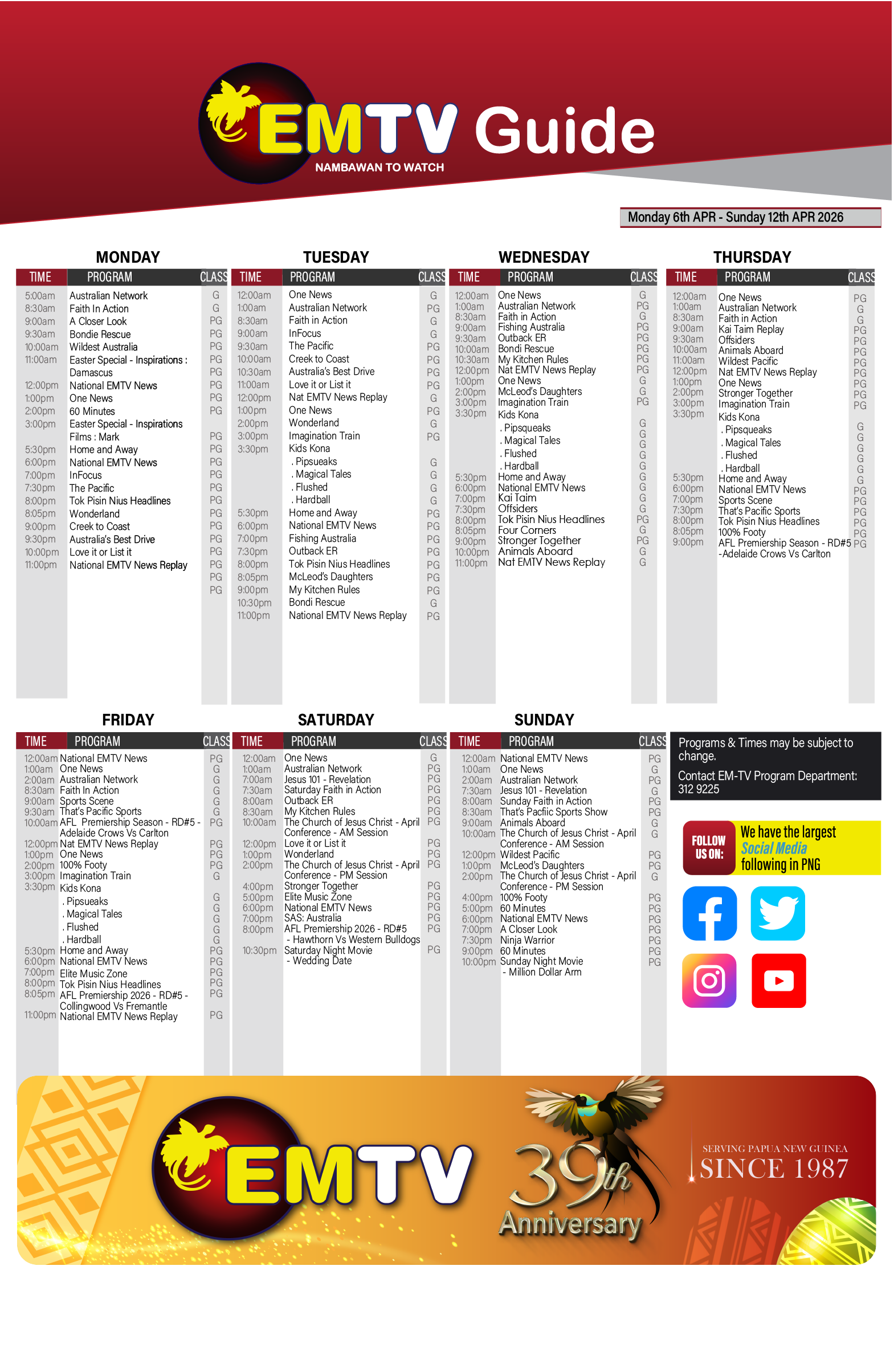 Close - TV GUIDE | MONDAY 02nd MAR – SUNDAY 8th MAR 2026March 3, 2026