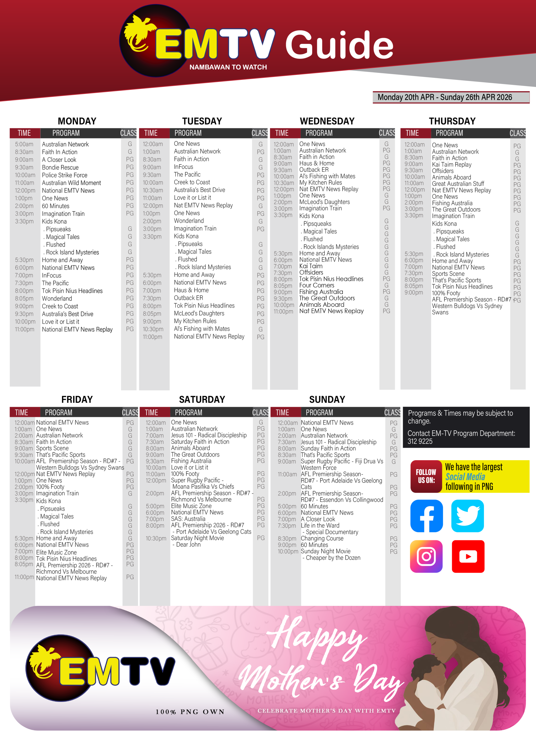 TV GUIDE | MONDAY 20th APR – SUNDAY 26th APR, 2026
